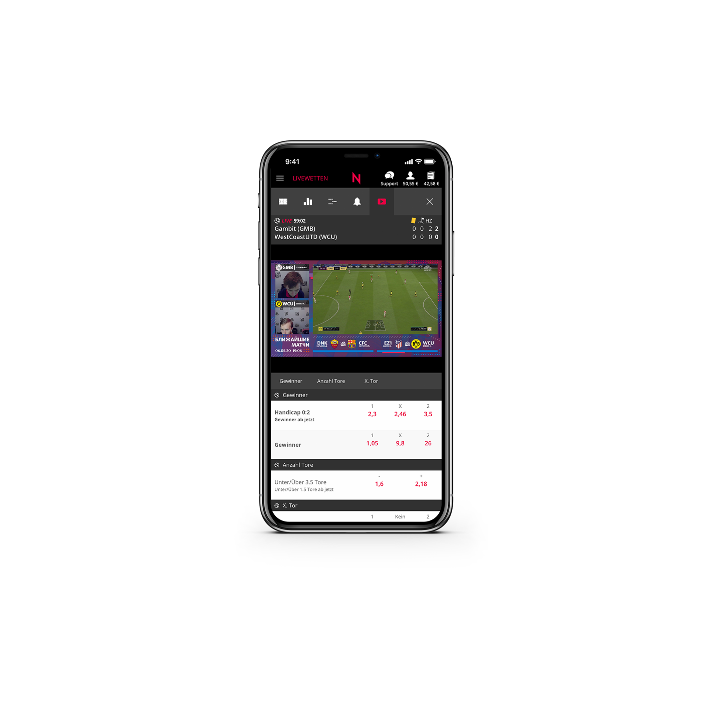 In addition to the advantage that you can react to changes in the game spontaneously and spontaneously through eSports betting with livestream, the betting slip can also be paid out by cash out with eSports. So you can not only place the bets according to your feeling that you get by watching the live stream. You can also have your betting slip paid out if a match does not develop as expected. The Cash Out feature works just as well for eSports as for common sports. You don't have to be a gaming professional to use the eSport video stream to maximize your profits.