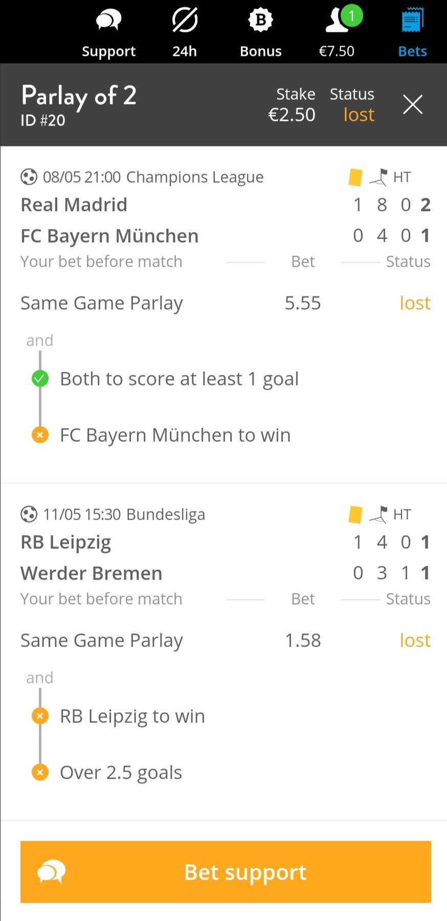 With our improved visualization under "My bets", you can keep track of your bets at all time.