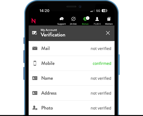 All bookmakers and gambling providers licensed in Germany are required by law to verify that their customers are genuine and legitimate persons. This is an important step in complying with legal regulations. However, the account verification at NEO.bet also protects you and your winnings, as verification ensures that only you are authorized to claim your sports betting winnings. In this way, verifying your betting account prevents fraud and abuse and ensures that no under-age individuals can participate in gambling. By verifying your account with NEO.bet, you also support the prevention of money laundering. By verifying your betting account, you are therefore making an important contribution to your own security and to the integrity of gambling services.